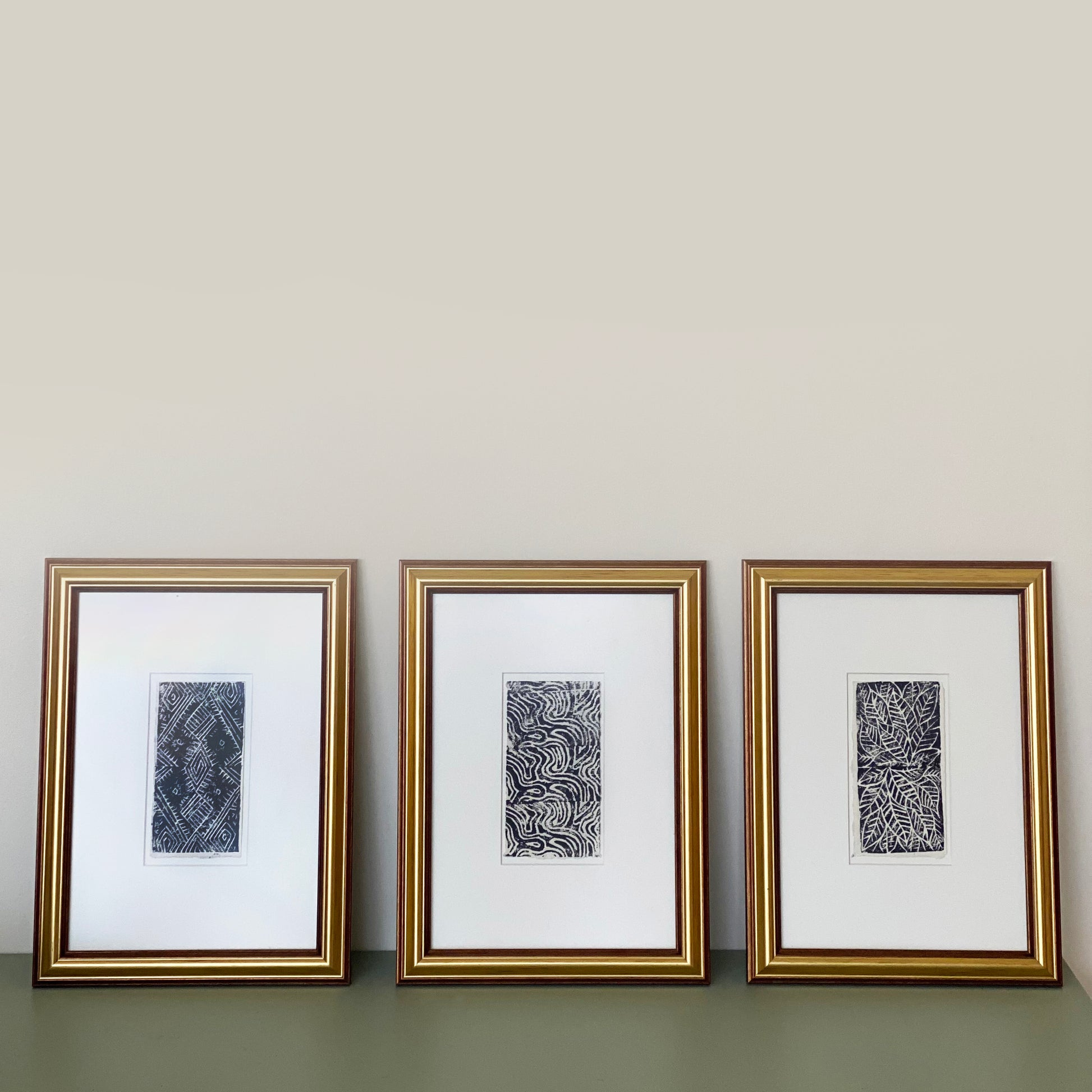 A set of three frames, each featuring a unique pattern inspired by nature, available in a limited edition. Printed in a special paper.