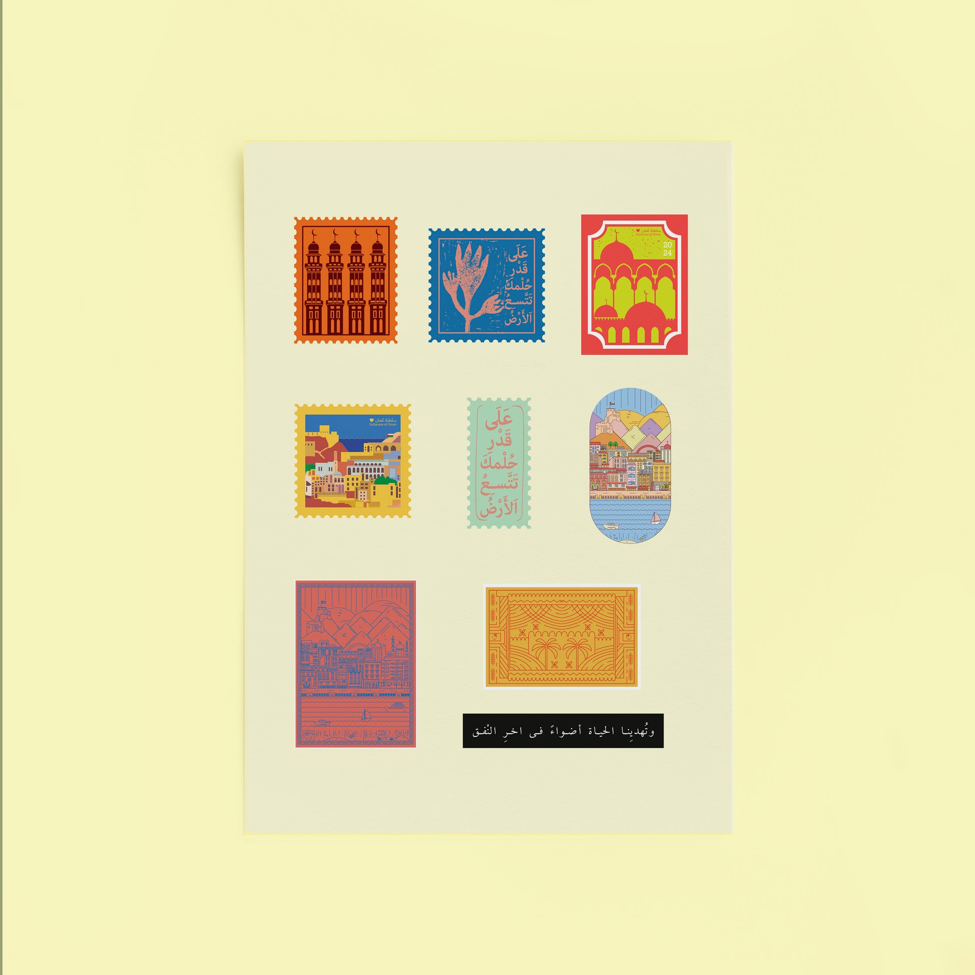 The design of these stickers is inspired by Omani and Islamic architecture, along with some Arabic phrases. This is a wonderful choice that reflects rich culture and heritage.